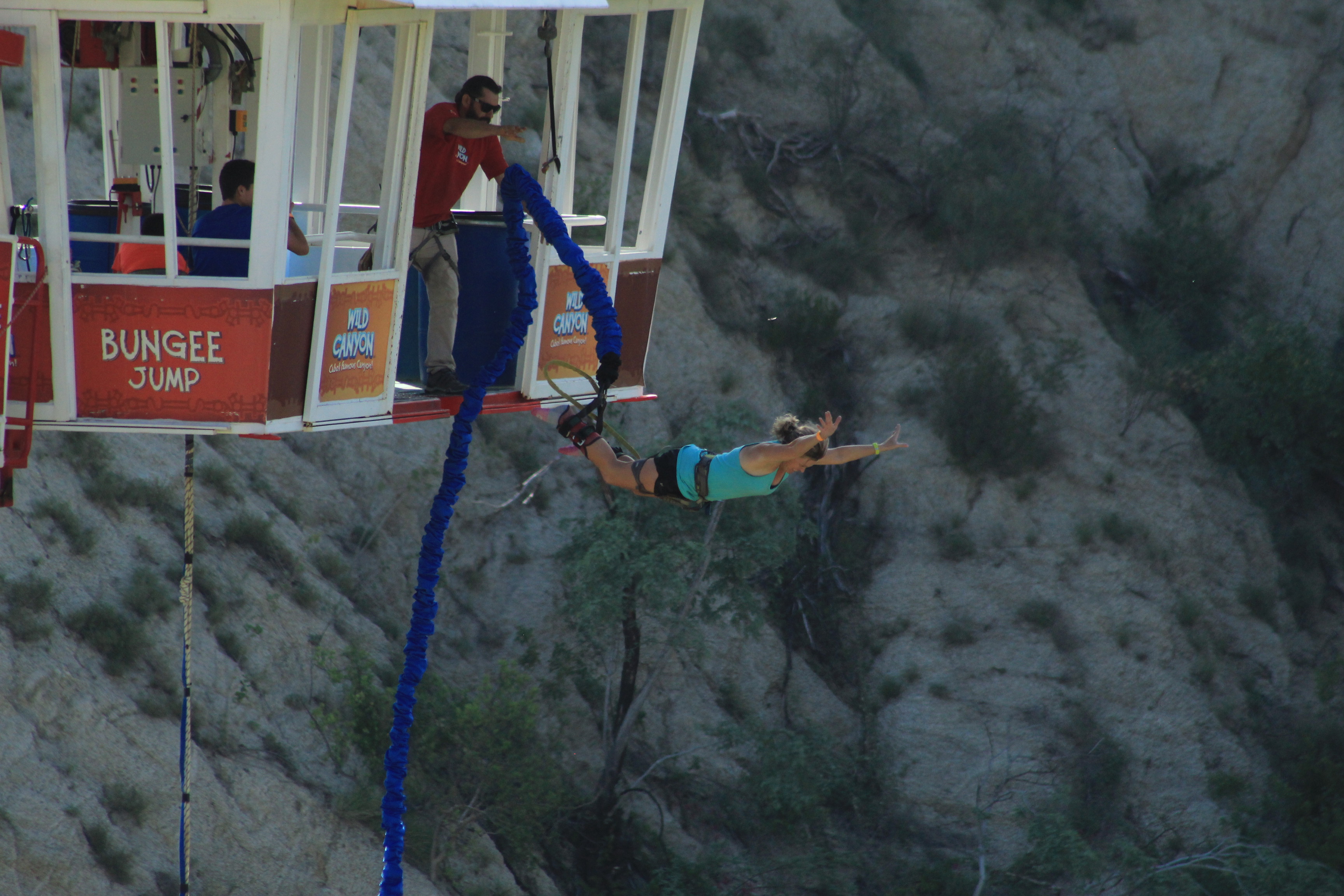 About a day and a half earlier, we stopped at a stand in downtown Cabo to talk about attractions with one of the many relentless men trying to stop us as we walked down the street. I initially thought ziplining might be a great choice but was quickly shot down by my sons. They had ziplined before and wanted to try something new. -Bungee Jumping. Starting to regret my choice of raising my kids to be adventurous! Just talking about it made my stomach queasy.