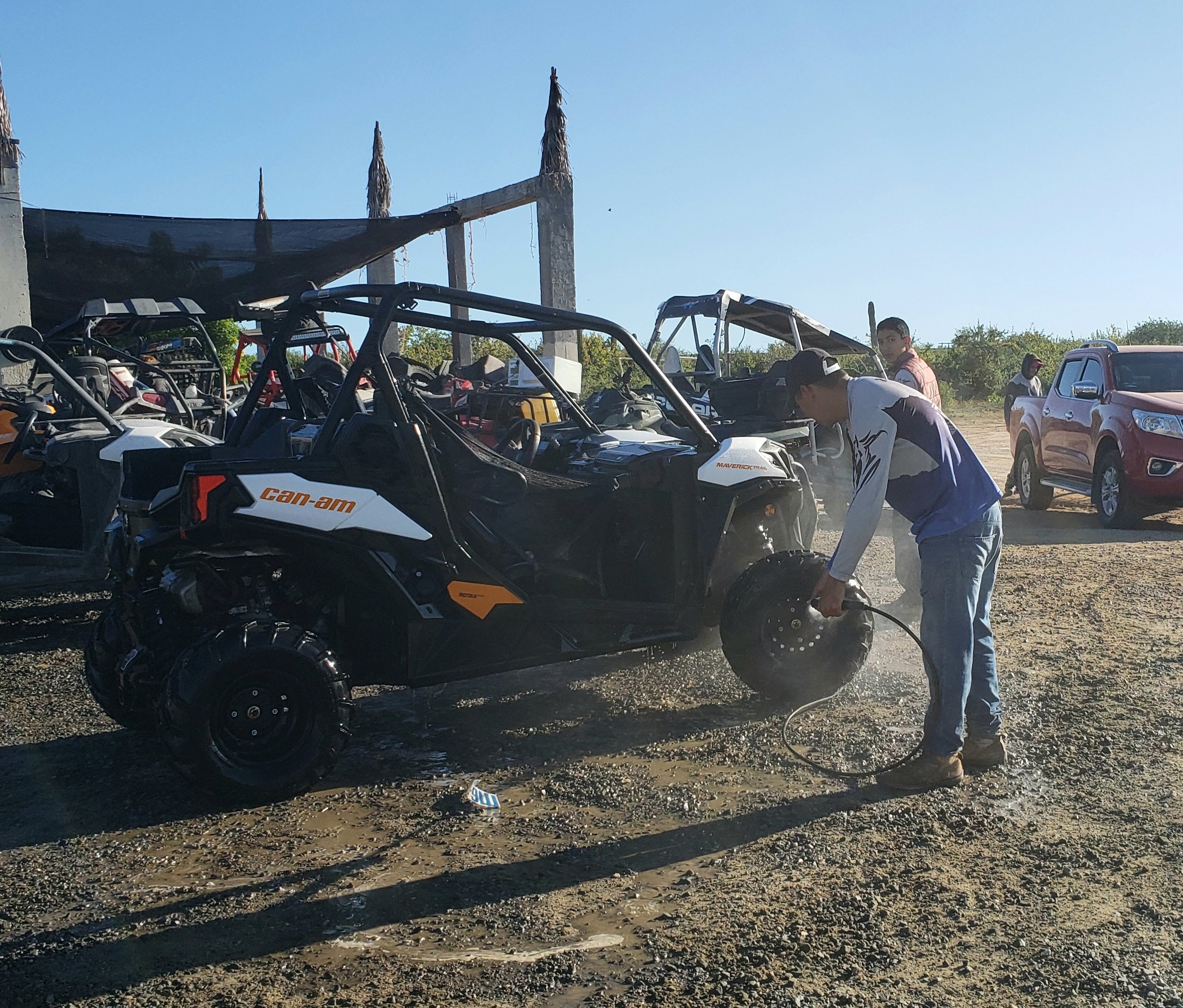 Nos presentamos en Picacho Adventures al norte de Cabo San Lucas temprano una mañana. Habíamos hecho arreglos con Juan el día anterior y nos encontramos con Héctor el Protector (como él mismo se llamaba) y Bruno, nuestro guía turístico rápidamente después de llegar. Ambos chicos fueron increíbles y al instante nos pusieron a gusto. Inmediatamente me reuní con Héctor, ya que tenía conexiones con Kansas City y no había manera de no ser amigable con Bruno. Me mostró su casa, habló de su trabajo con caballos y compartió cómo ama su trabajo porque conoce a tanta gente nueva. Su pasión era evidente. No tenía ninguna duda de que estábamos en buenas manos con ellos, ya que nos prepararon y nos dijeron las precauciones de seguridad.